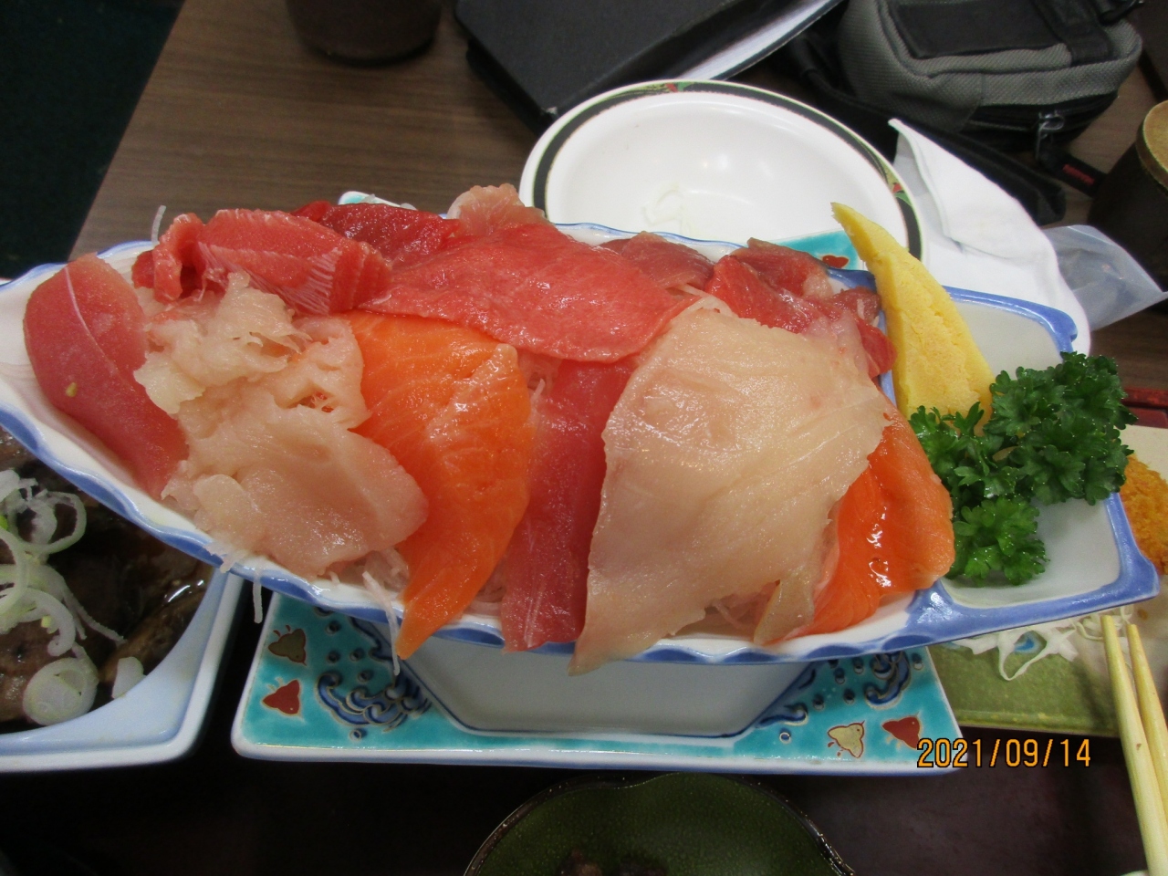 満席状態で人気のあることがうかがえた。刺身定食の刺身もメガ盛りで豪華だった。