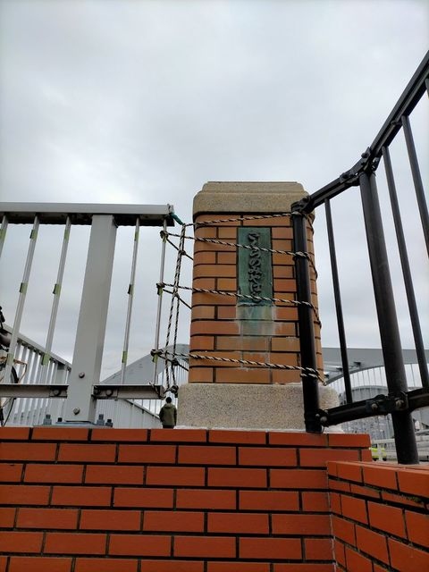 昔に桜の通り抜けに来た時に利用したかもしれないが、今回は春の時期ではないが桜宮橋を歩いて渡りました。見た目の色で通称は銀橋と呼ばれているそうです。橋の名前は古い板を昔風のレンガの所に取り付けられていました。