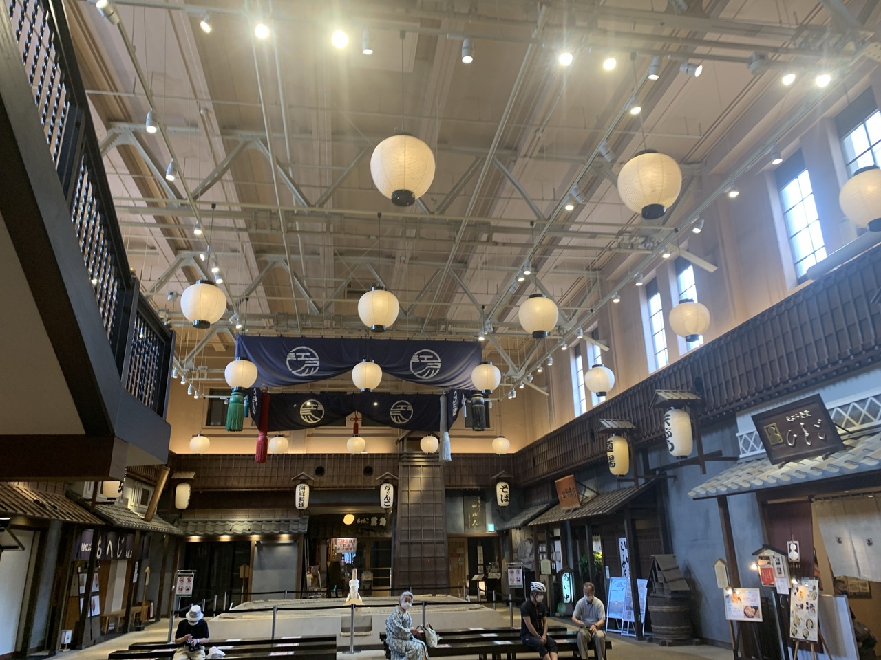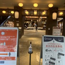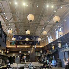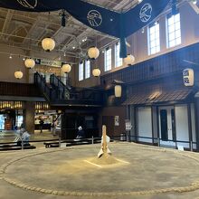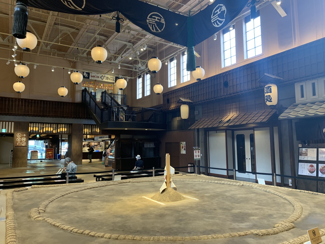観光案内所と、中央に何故か土俵があって、まるで国技館のようです。