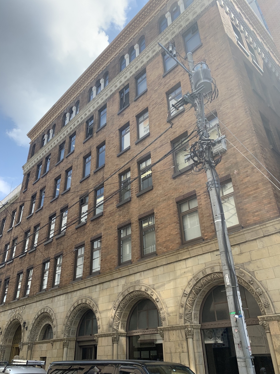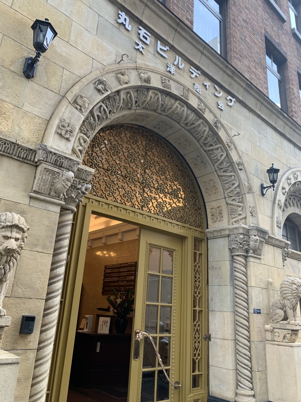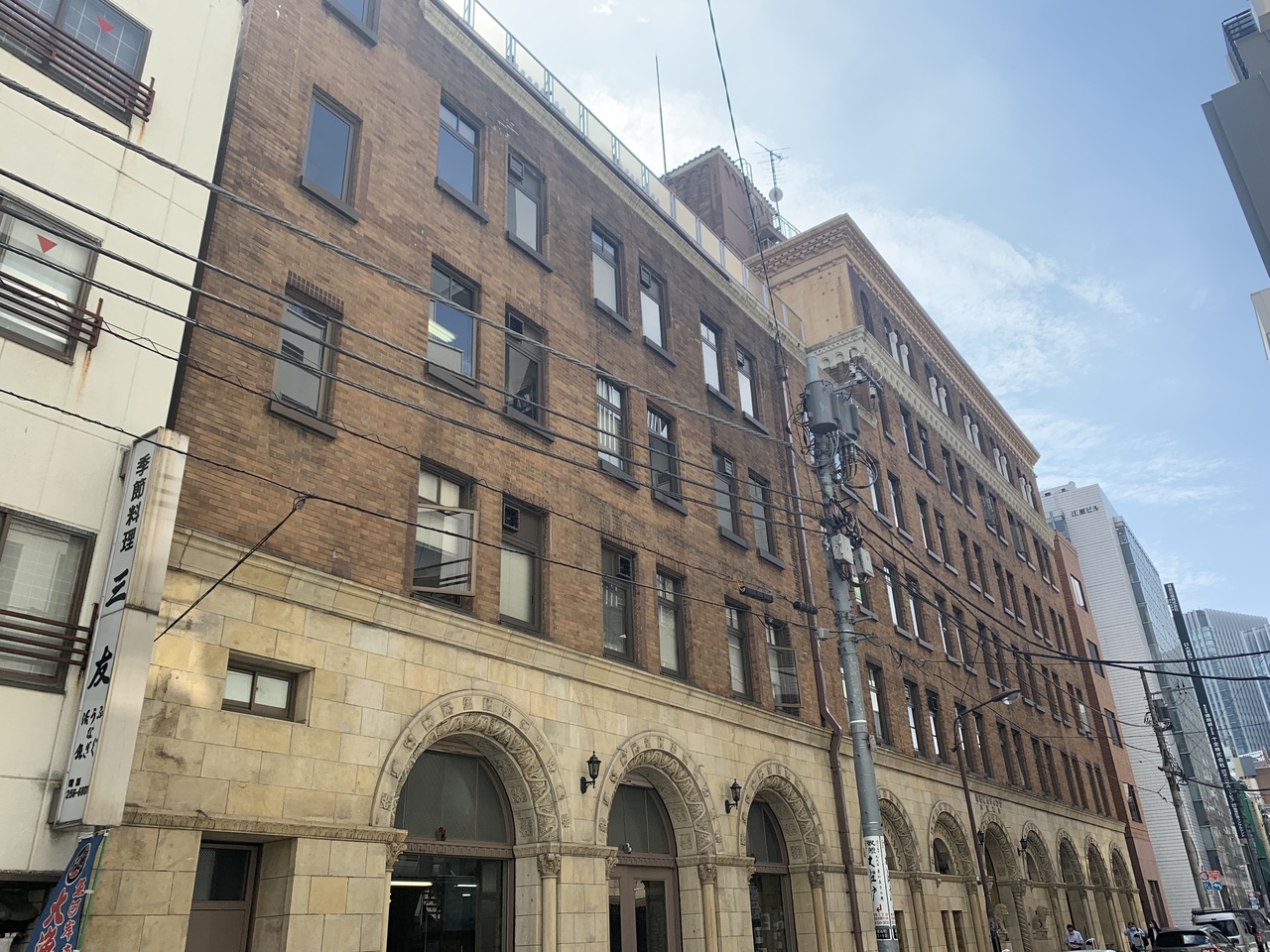 山梨中央銀行のビルの道路の反対側に建つレトロなビルです。