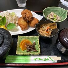 尾之間にある人気の定食屋。人気店らしく、宿泊先のお宿から予約を入れてもらって入り込めました。1100円のから揚げ定食が名物らしいのでオーダー。とてもサクサクのユニークなから揚げでした。観光客に対しても接客が丁寧でとても交換が持てます。