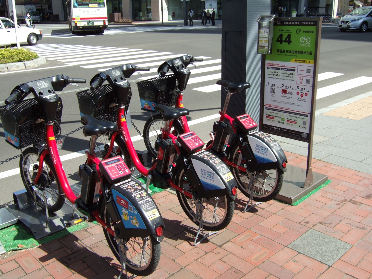 札幌市内のあちこちで借りて返せるレンタサイクル。札幌駅から大通へ歩く途中にもポートがあり、札幌の中心部を散策するのにとても便利です。