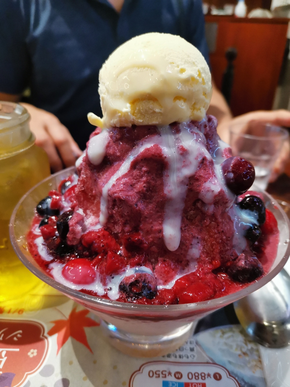 夏も終わりに近づいていたので、この夏最後のかき氷を食べようということになり、ベリー系のかき氷をいただきました。ここへ来ると豆花を食べる事が多かったのですがかき氷も美味しいですね。ベリー系の果実がたくさんのっていてとても良かったです。