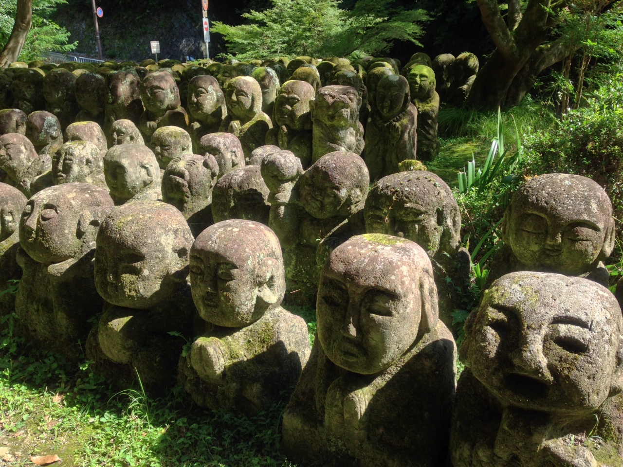 おたぎ念仏寺と読みます。奈良時代建立のお寺ですが、一時は廃寺になったのを昭和55年から復元修理と復興事業が始まり、此処の羅漢像は一般の参拝者の手によって彫られたものです。一体一体が、薄っすらと苔に包まれ心を和ませてくれました。