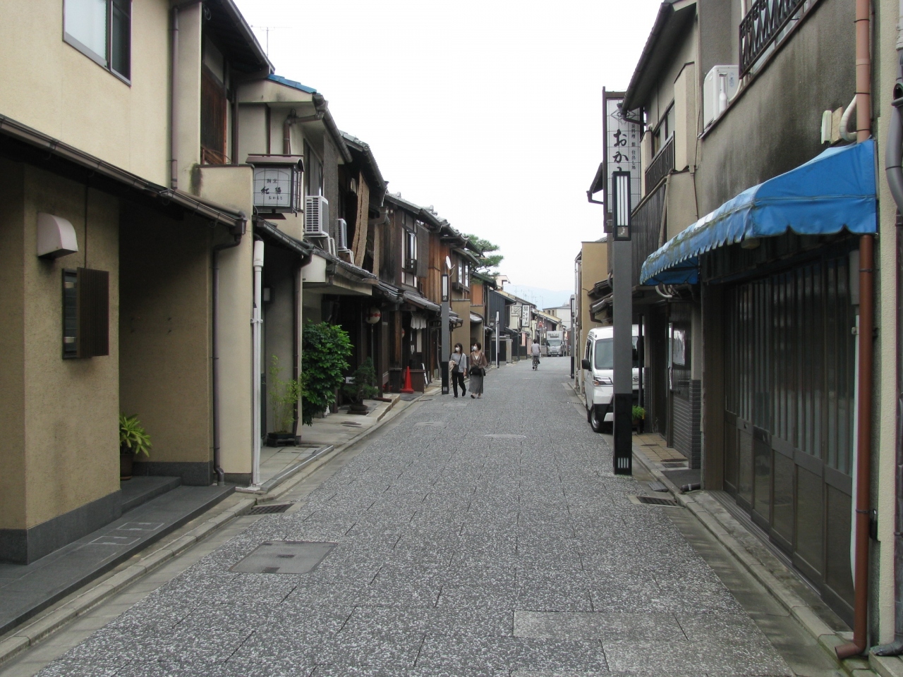 戦前まではお茶屋50軒、芸子・舞子合わせて60名に娼妓もいたようですが、終戦後は大半が転廃業し、西陣織の衰退も重なり芸妓数も20名以下に落ち込んだようです。
