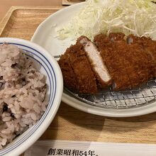 近鉄西大寺駅前にある奈良ファミリーにあるトンカツ屋さんの『かつ満』さんです。食事時間帯をずらしたので、店内は私と、もう一組のみのお客さんです。キャベツの千切りとご飯はおかわりが自由です。ご飯は白米と、十穀米を選べました。とんかつは揚げたてを提供で美味しかったです。