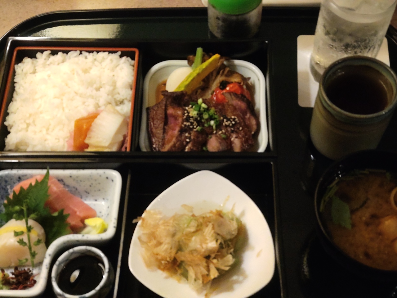 東京グランドホテルに宿泊した際、夕食と朝食で利用しました。夕食はルームサービスで牛ステーキと刺し身のお膳をいただきましたが、肉はちょっとかたいと思ったものの十分においしかったです。朝食は和食または洋食のセットでどちらも簡素でした。
