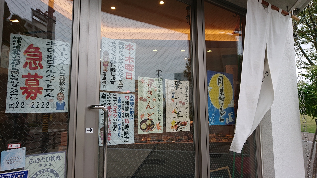 9月中旬に訪問しました。店内は、夏らしいお菓子と秋らしいお菓子が、共に並べられている感じでした。そんな中から、お菓子数点を購入。そのうち、くりどら焼きは、しっかりとした大きさの栗が入っている、贅沢間のあるどら焼きで、おいしくいただけました。