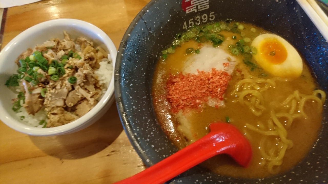 岩見沢市内から札幌に向かう国道12号線の左側にあるピラミッド型のたてものが「45305」さんです。最初、お店の読み方がわかりませんでした。お店のスタッフに読み方を聞くと「しこうさくごです」と教えてくれました。店内は、おしゃれな雰囲気でカフェもやっているというので、うなずけます。さっそく、えび味噌豚骨ラーメンとミニチャーシュー丼のセットを注文。えびの殻のフレークがかかった見た目もおいしそうなラーメンです。実際、あっさりした中でもコクのあるスープでえびも豚骨も共存したスープです。ミニチャーシュー丼は甘しょっぱいチャーシューがたくさんのっています。味噌ラーメンとの相性がとてもよく、スープも残さず、しっかりいただきました。また寄りたいお店です。