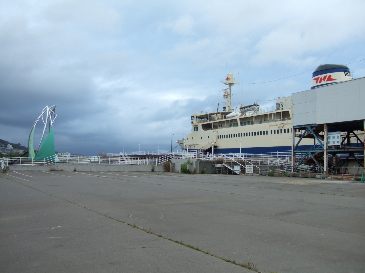 函館駅を出て右側、メモリアルシップ摩周丸が係留されている横にある広場。