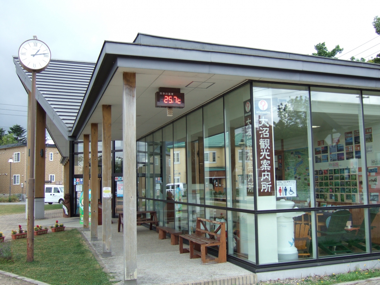 特急も停まる大沼公園駅を降りて、すぐ右側にある建物。ガラス張りの外壁の中は観光案内所になっており、大沼公園の美しい写真が展示されていたり、周辺の観光案内も充実しています。地元の物産を売っているコーナーもありました。