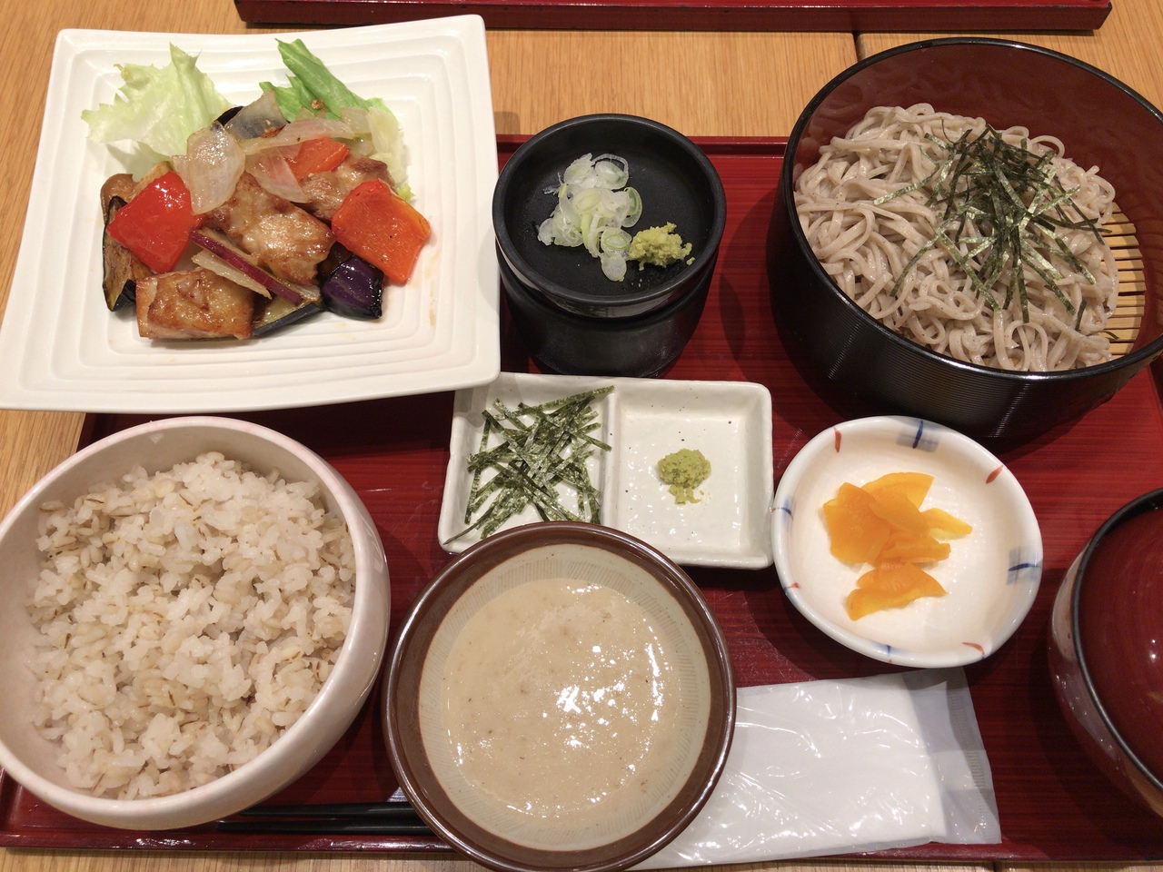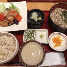 お蕎麦や天ぷら、刺身などの和食メニューが中心で、自然薯がついてきます。
