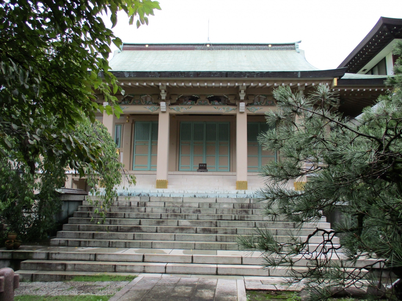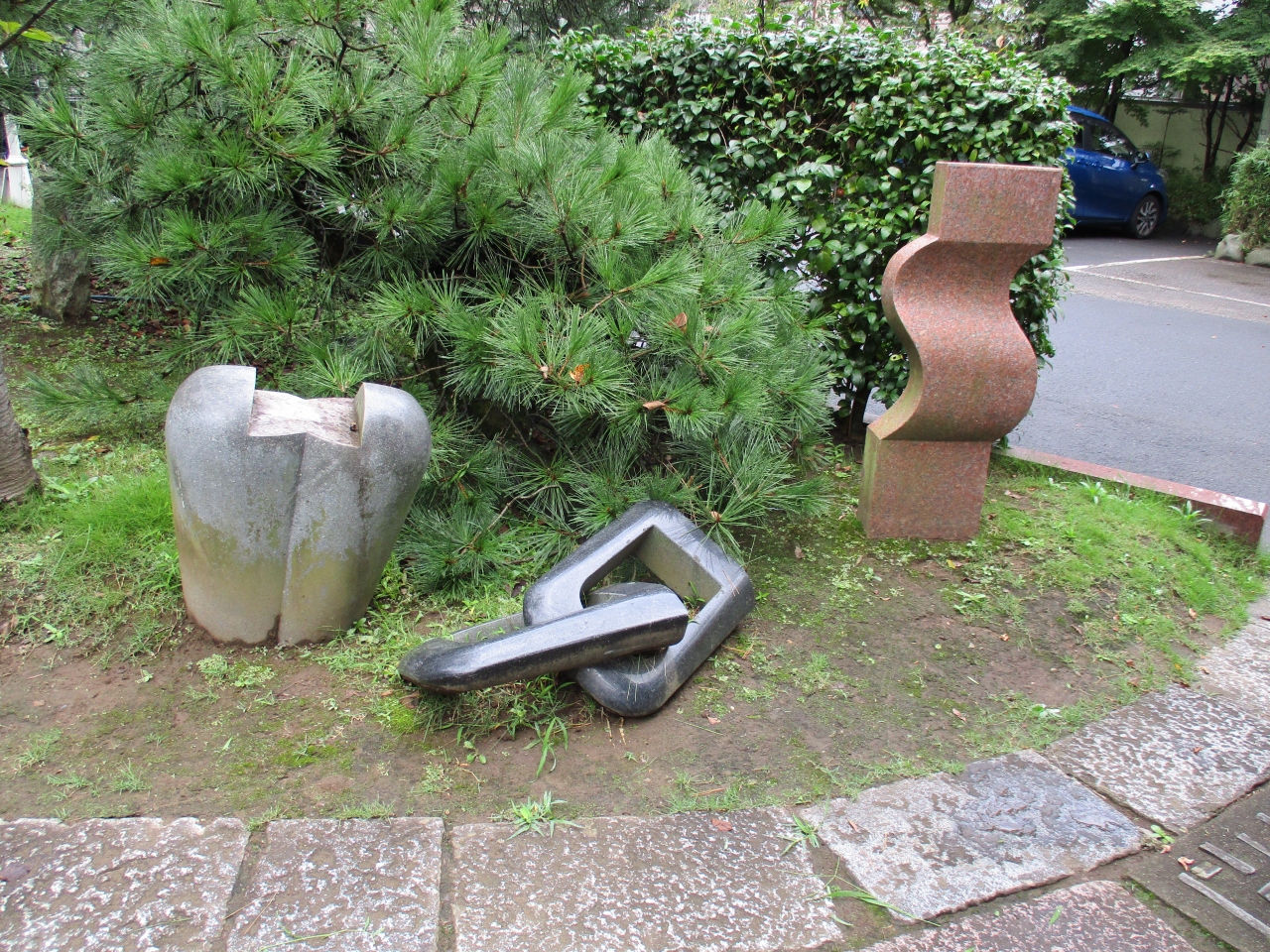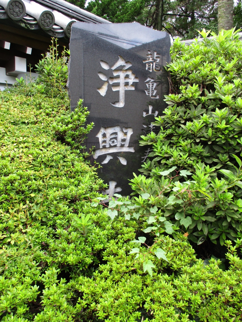 地下鉄都営新宿の一之江から周辺を散策していて、お寺を見つけたので立ち寄ってみました。寺門の脇にお寺の名前を刻んだ石碑がありましたが、半分ぐらい植栽に埋もれていました。また境内には、まるで知恵の輪のような石のオブジェが、あちらこちらに置かれていて、とても面白いと思いました。