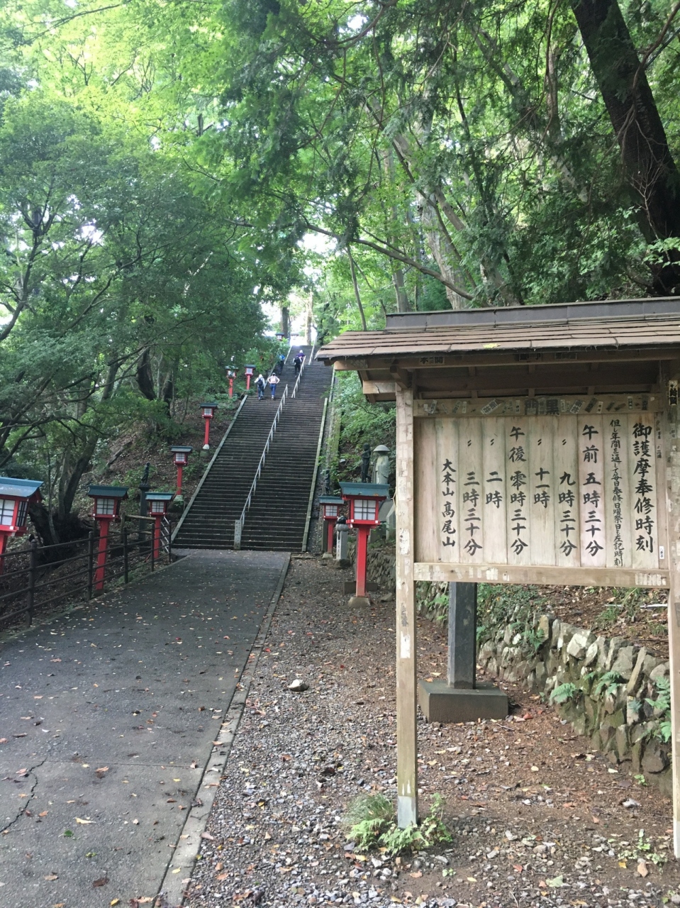 中服まで場所ロープウェイで上がり、山頂まで歩きました。1合路を歩き凡そ40分ぐらいのハイキングでしたが緩やかな坂道で歩きやすかったです。杉並木が目立ち途中、お寺もあり、山頂付近は広場になっていてたくさんの人がいました。帰りは6合路から降り細い道でした。