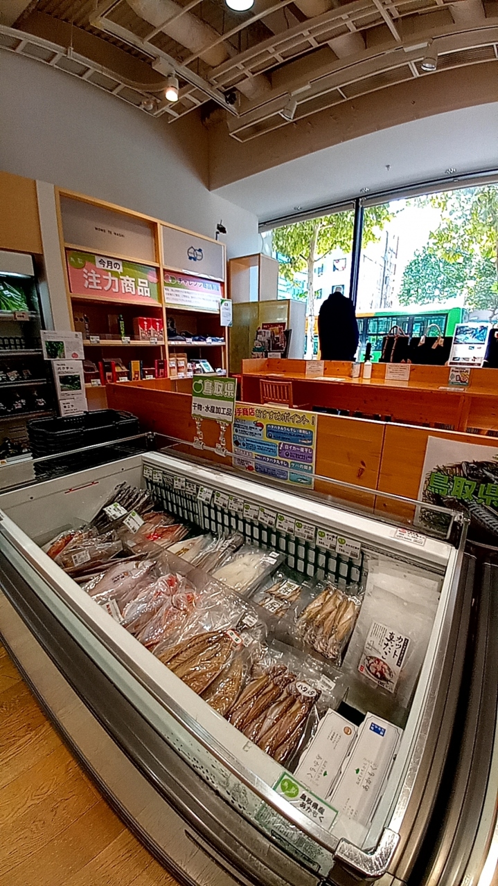 東京 新橋の「とっとり・おかやま 新橋館」を久しぶりに訪れました。鳥取県と岡山県のアンテナショップで、ぶどうなどのフルーツや野菜などのほかにも、ひものなどの海産物も販売されています。