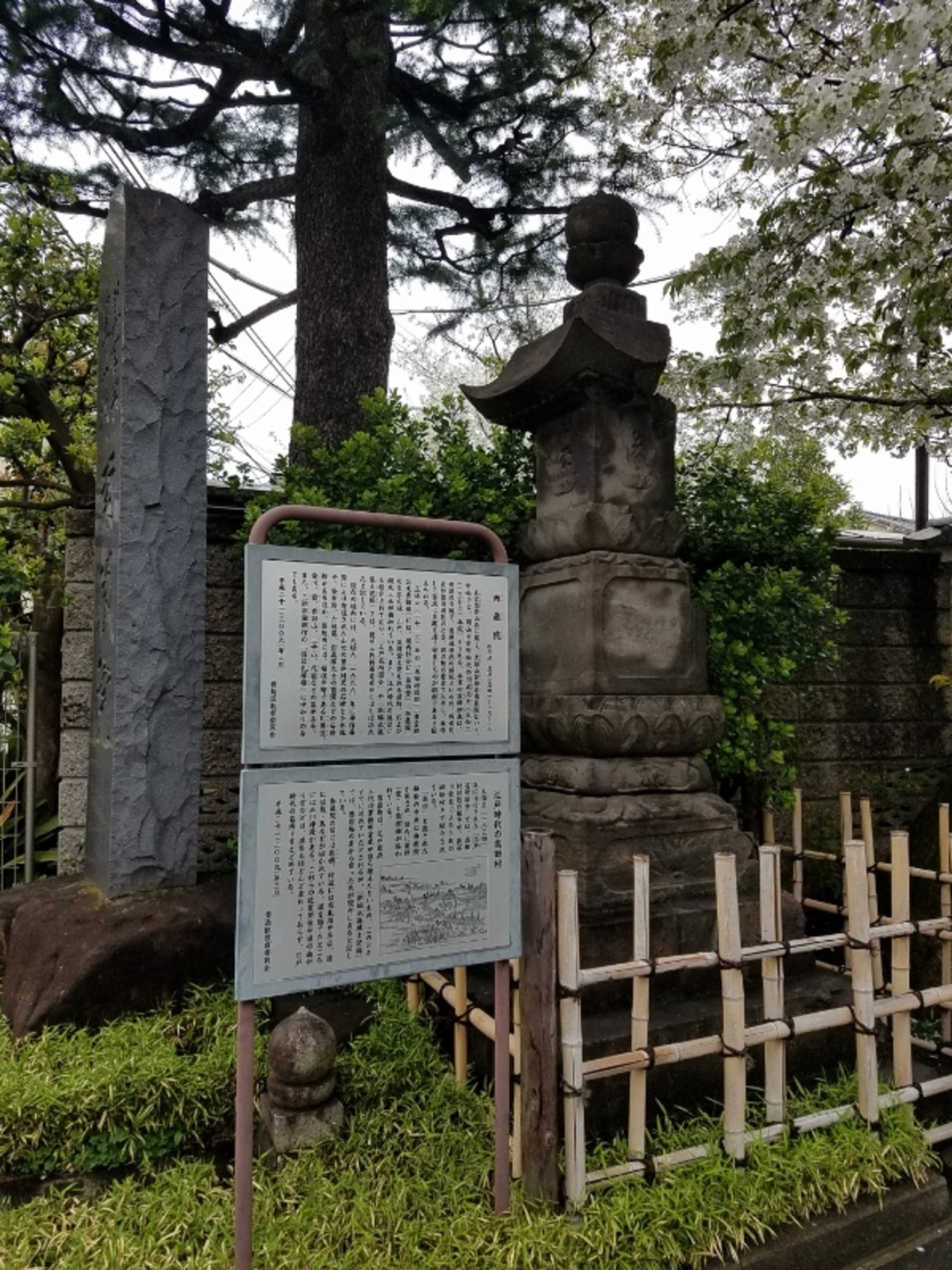氷川神社の近くにあります。現在の建物は近代的に見えますが室町時代に開山して江戸名所図絵にも描かれているという歴史のあるお寺です。門の脇や境内のお地蔵さん郡の背景などに桜が植えられていてちょうど満開の時期だったのできれいでした。