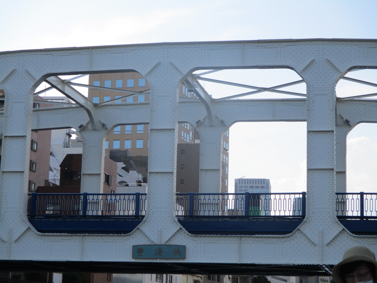 今回日本橋クルーズ船に乗船して、隅田川から日本橋に戻る際に川から眺めました。梯子を横にしたようなデザインで、専門用語では、フィーレンディール橋というそうです。重量感があって鉄骨橋梁の代表例なんだそうです。