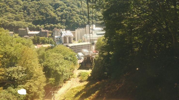 全長621メートル、標高差300メートルを約4分で結ぶ。短い時間ながら空中散歩が楽しめるが、窓ガラスが紫外線カットの加工をしているのか黒くなっており、クリアな視界とはいかなかった。