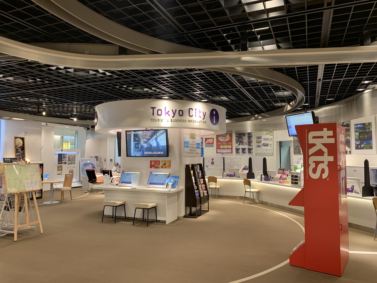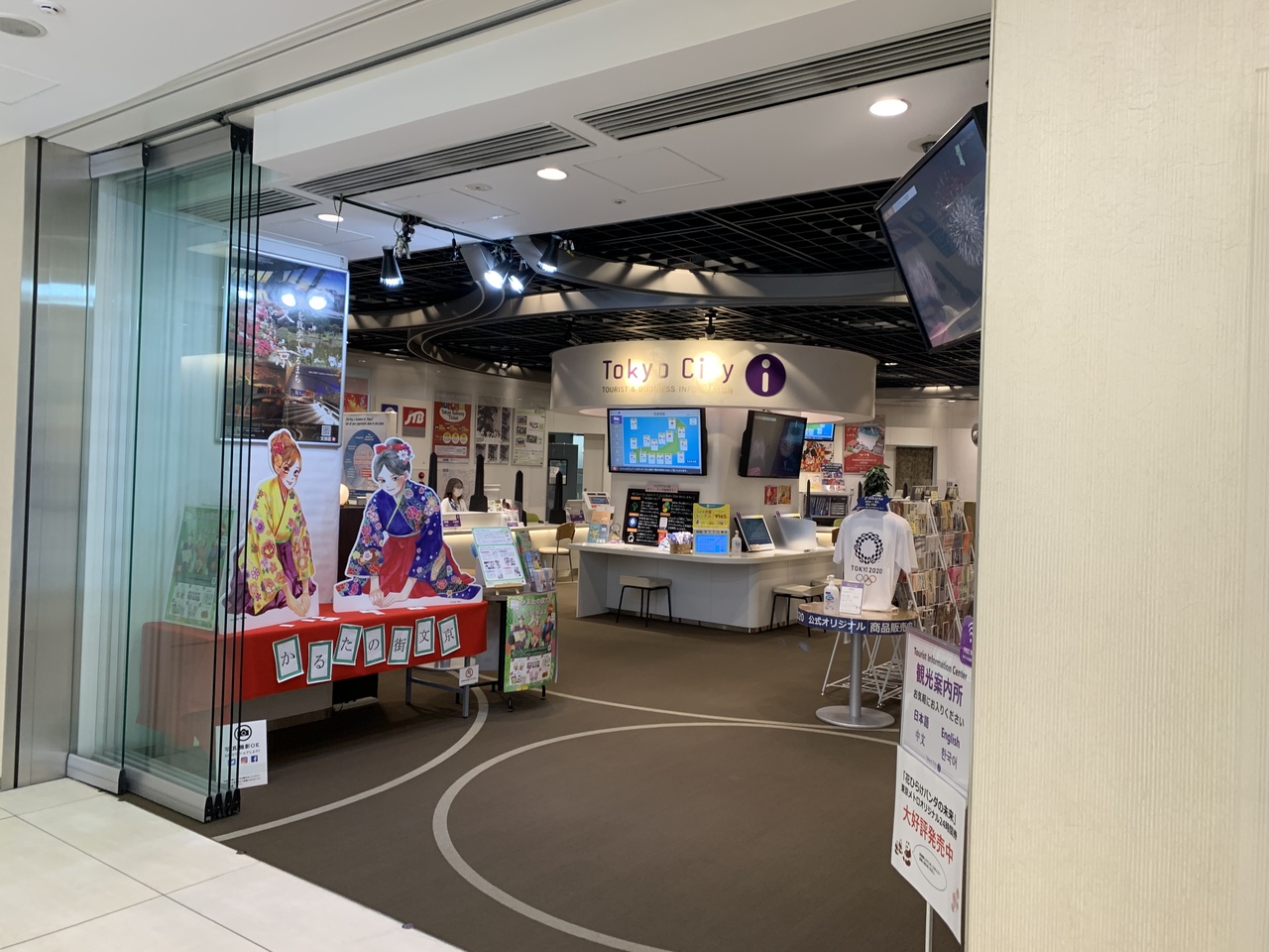 東京駅地下、動輪の広場からすぐのKITTEの地下にある観光案内所です。