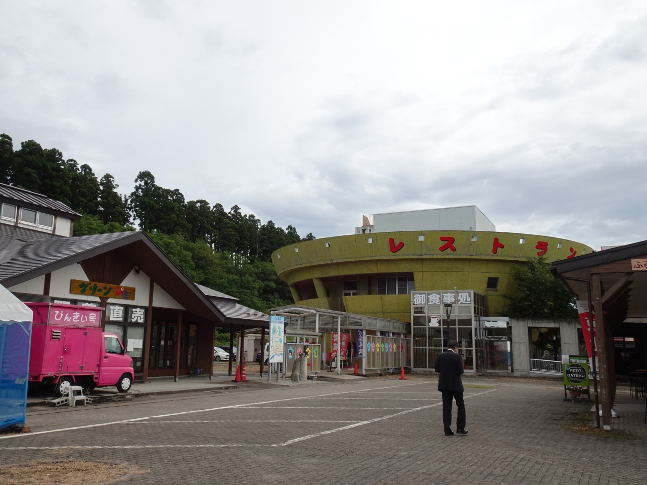 体験学習物産館の入る建物は上が広い円筒型の一風変わった造り。深鉢型縄文式土器をイメージしたとのことで、近隣には高石野遺跡があります。建物内ではレストランが営業していましたが、それ以外の部分は暗く土笛づくりなどの体験教室は開催されていないようで寂しげ。