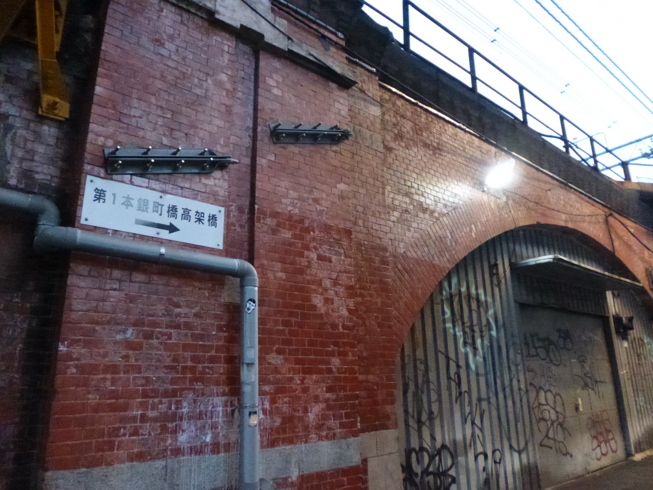 第1本銀町橋高架橋は、龍閑橋架道橋と本銀町架道橋の間の高架橋です。3つのアーチからなる興味深い高架橋ですが、経年劣化や損傷も激しく、映画やドラマのワンシーンに出てきそうな光景です。鉄道ファンにとってもややマニアックなスポットだと感じました。