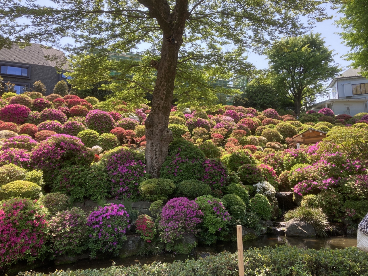 令和3年の根津神社の「つつじまつり」はコロナ禍で中止でした。が、近所に用事があったため参拝に。満開時を幾分過ぎていましたが、それでも豪華に咲き誇っていました。根津神社の境内からも眺められますが、200円を寄進すると、斜面のつつじ苑に入ることができます。末社の乙女稲荷神社の千本鳥居と見事にマッチしていました。