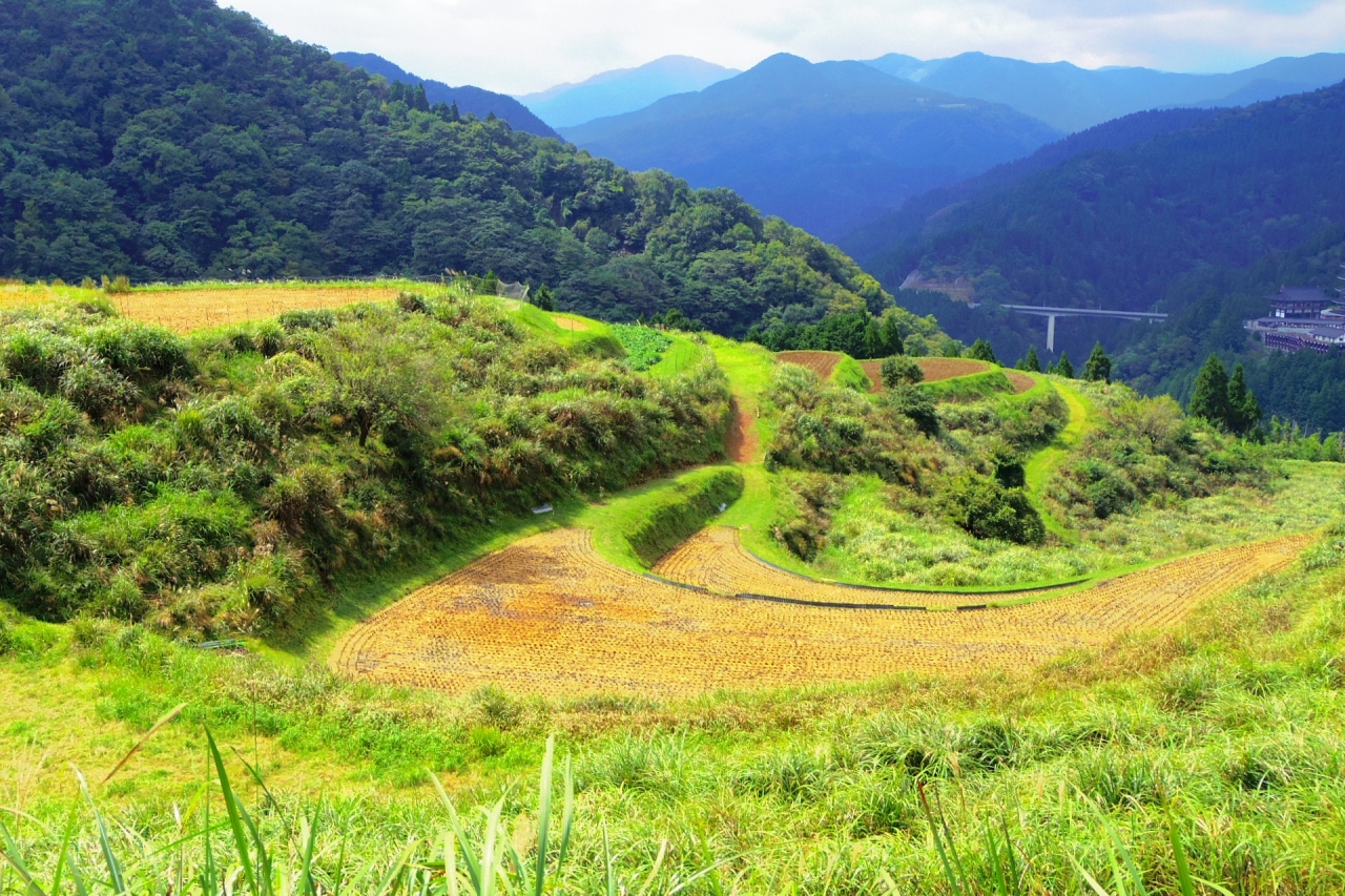 標高280m~400mで、地形の角度が約20度の急斜面に、約120枚の水田があり、日本の棚田100選にも選ばれたと、書かれていました。とにかく行くまでの道もすごいカーブだけど、棚田は未舗装の道だし、軽でなければUターンも困難なところでしたけど、良かったです。