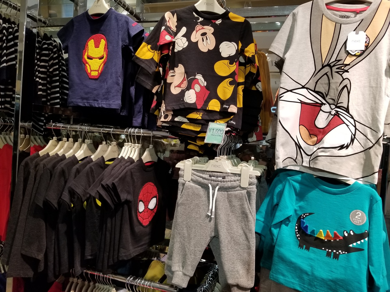 可愛い洋服がある。ディズニーのシリーズもたくさんありデザインも色彩も良い。