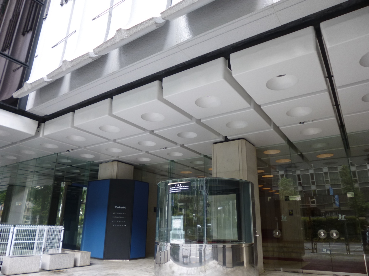 新橋の旧新橋停車場の近くに、ヤクルトホールの建物があります。1972年からここにあるホールで、演劇やテレビ番組の公開収録なども多く行われてきた、歴史あるホールですが、ヤクルト本社の移転と同時に竹芝に移るそうです。現在は、ニッショーホールの仮施設として使われているようです。