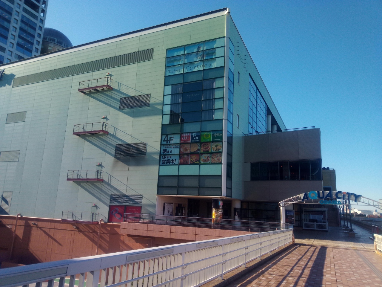 お台場と言ったら、東京の代表的なモダンな観光エリアで、アクアシティお台場もそんな中にあります。添付写真のように、大規模なショッピングモールで、レインボーブリッジの絶景もよく見えて、美味しいレストランが集結しています。