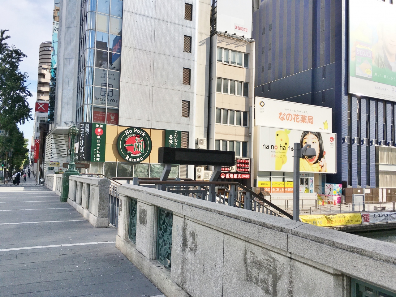 道頓堀川に架かる橋です。大阪で1番名の知れた大通りの1つである御堂筋の整備にあわせ、新たに架けられました。車の交通量も多く幅も広いので、橋というよりは道路にしか見えませんが、橋からはグリコのネオンなど大阪・ミナミの代表的な光景を眺めることができます。