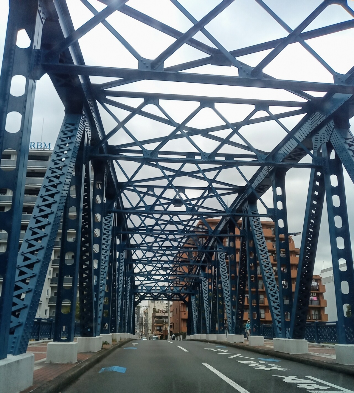 青い色が印象的な鉄骨橋