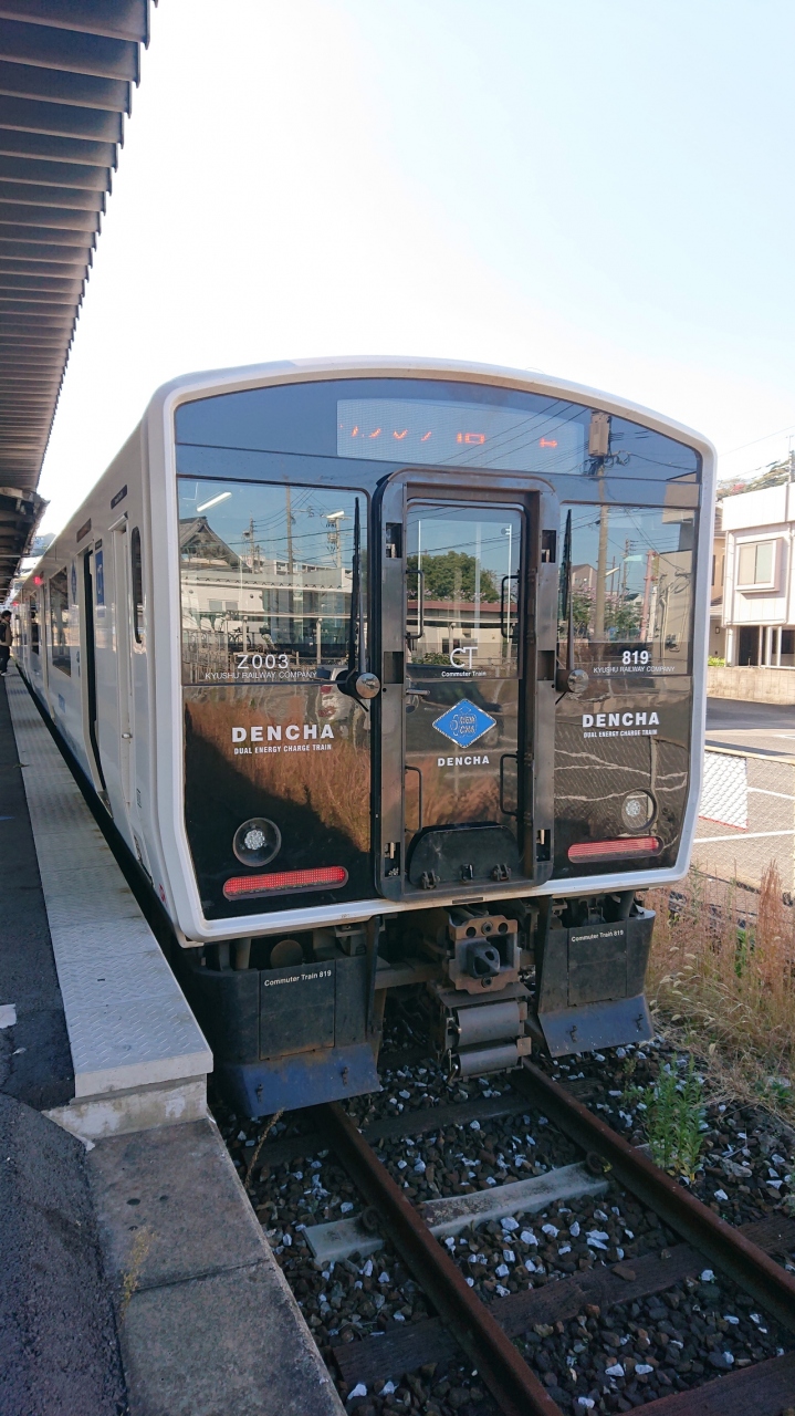 「若松線」の愛称を持つ若松~折尾間は非電化ですが全線複線です。最新鋭の架線式蓄電池電車であるBEC819系「DENCHA」が運行しています。この二つの区間は比較的乗降客もおおく、日中もそれなりに混雑します。