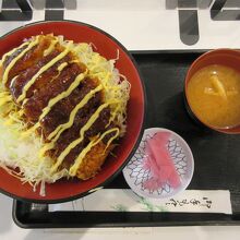 談合坂サービスエリア上り線のフードコートに入っています。味噌カツ丼や生姜煮定食、カツカレーなどが味わえます。味噌カツ丼を食べましたが、カツの肉はやや薄いものの、甘辛いソースに辛子マヨネーズが乗っていて美味しく感じられました。前回利用した時はあまりおいしく感じられませんでしたが、バージョン2と掲示してあったので改善したのかもしれません。相変わらずご飯の量は多めで、おなか一杯になりその日の夕食は食べられませんでした。