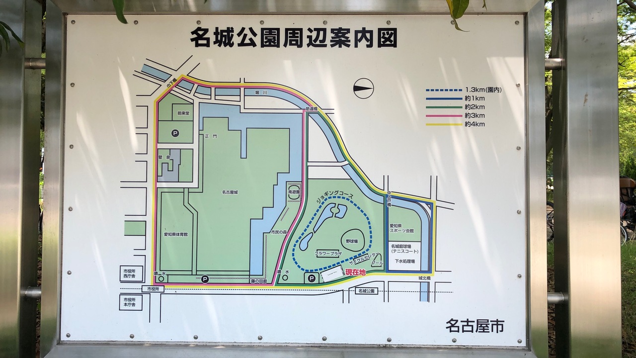名前のとおり、名古屋城がある公園です。東西南北1km四方ぐらいの広い公園です。名古屋城のほか、能楽堂やプール、体育館、テニスコート、下水道科学館など、多くの施設があります。金シャチ横丁やスタバなどの飲食店もあります。