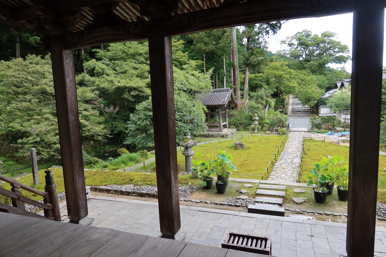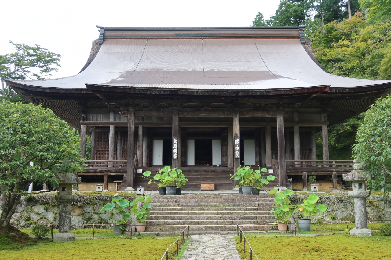 大原にある三千院から茅穂橋を渡り、まっすぐ進んだ突き当りにあるお寺が勝林院です。昨年NHKで番組「歴史発掘ミステリー」で見て気になっていた寺院です。番組で見たように本堂の傷みは酷く、杮葺きの屋根にはトタンが載せられている状態。本来拝観料が居るのですが、修繕中と言うこともあり、自由に境内に入れました。