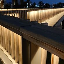 9月下旬の平日の18時頃に訪問しました。橋を渡っている人は結構いらっしゃり、スーツ姿の方が目立ちました。時間帯的にも、服装的にも、退勤後のビジネスマンパーソンも多く利用しているのかな、と感じました。なお、既に橋のライトは点灯されており、眺めると綺麗でした。