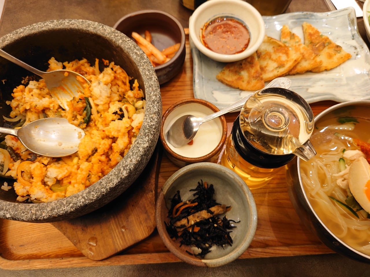 百貨店のレストラン街にある韓国料理のお店です。ビビンバと冷麺など少量ずつのセットもありいろいろ選べました。店舗も奥の方にあって人があまり多くなくてゆっくり食べることができます。グループなどは半個室のような席もあるのでよいかも。