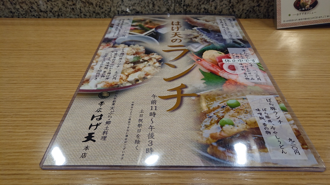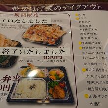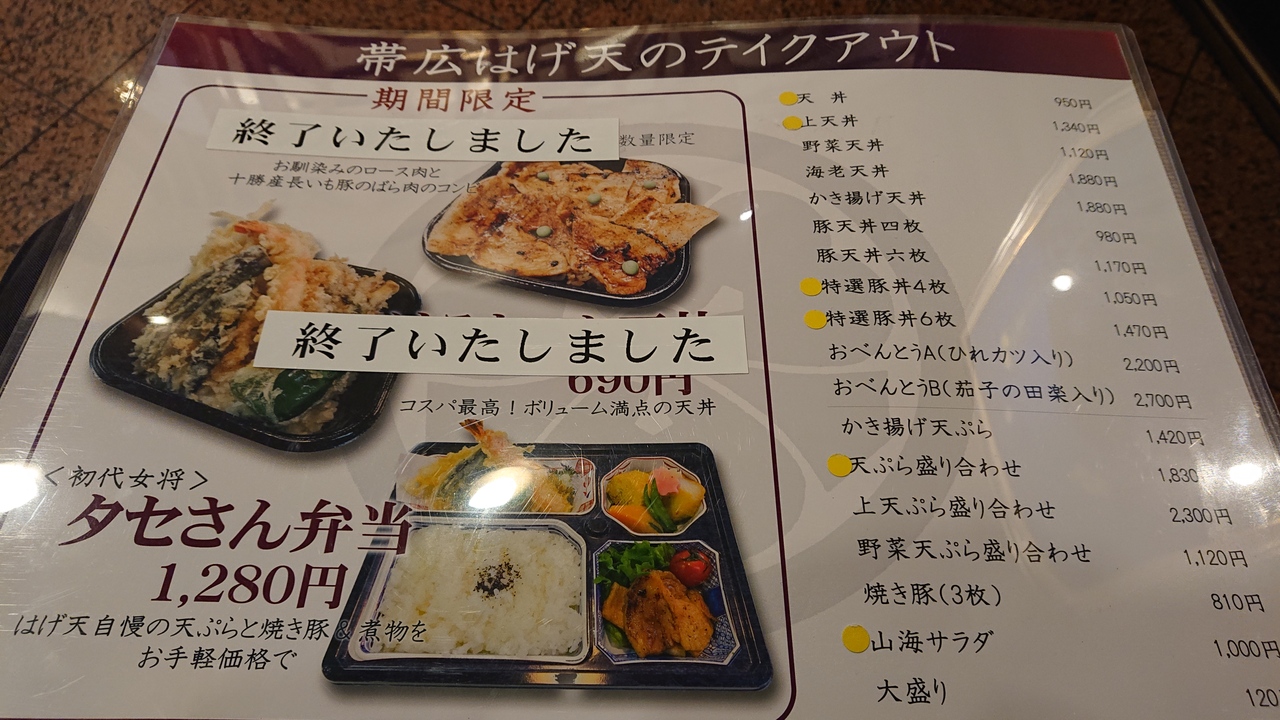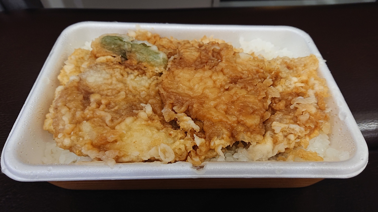 都合により、同じ日に、店内飲食とテイクアウト両方で利用しました店内では、天ぷらランチを注文。テイクアウトでは、豚天丼四枚、を注文。前者は、天ぷら5品に、お汁、小鉢、プチデザートがついており、お値打ち感がありました。後者は、豚の天ぷらが美味でした。