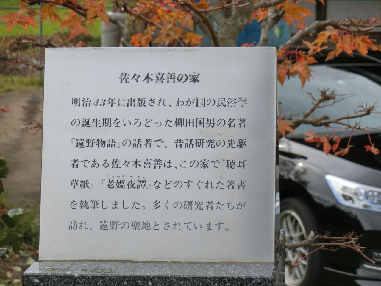 山口の水車を見に行った時に、通りがかったので、外観だけ見てみました。佐々木喜善は柳田國男の遠野物語の話者で昔話の先駆者だそうです。今は縁者の方が住まわれていて、中を見ることができません。こちらの家も遠野に多い曲り家造りになっています。