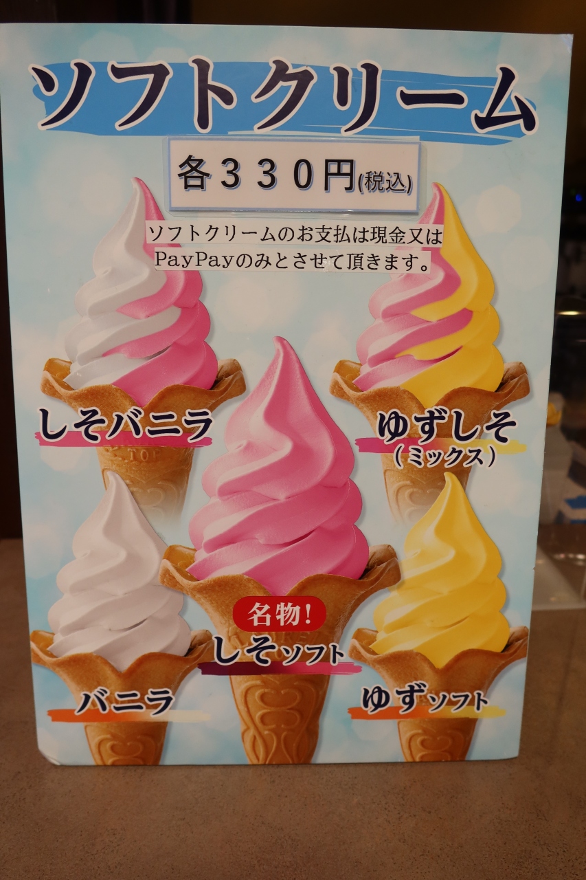 そして、しば漬けの店ならではのものが、しそソフトクリーム。特別に美味しい味ではないですが、独特の面白い味が楽しめ、お薦めです。