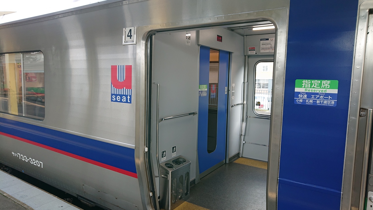 正式には、桑園駅が起点となっています。しかし、全ての列車が札幌駅始発となっていますので、事実上、札幌駅から北海道医療大学駅までを結ぶ路線と言って良いかと思います。石狩当別駅から、当駅始発の札幌行の普通列車に乗車したところ、回転式リクライニングシートを備えた、uシート用の、サハ733系が、自由席扱いで連結されており、迷わず、その車両に乗車。札幌まで快適に移動できました。