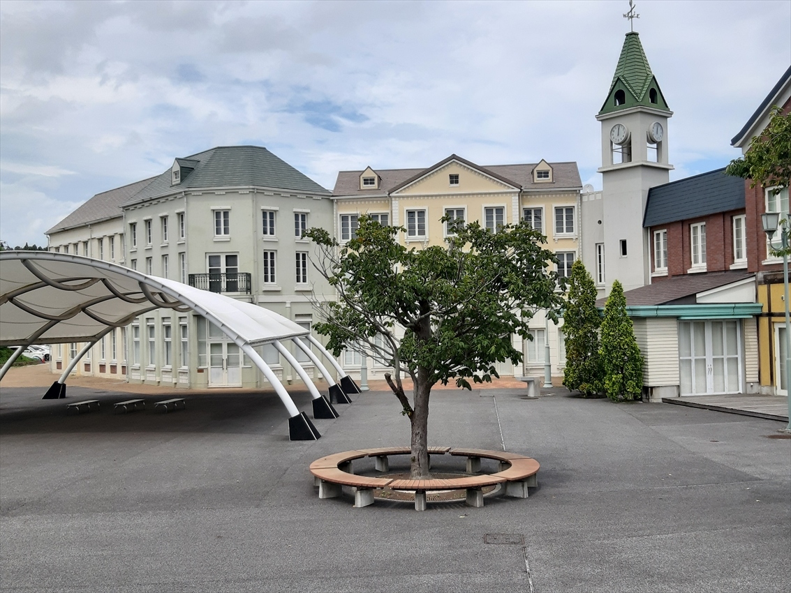 西洋のお城のような塔があったりして、遠目には子どものための施設のようにも見えるのが不思議な建物ですぐ分かります。
