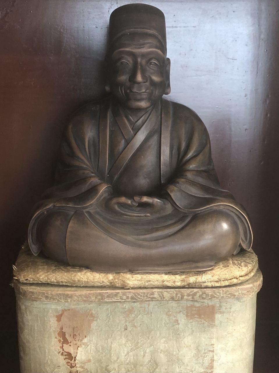 全昌寺は曹洞宗の寺院、大聖寺城主山口玄蕃の菩提寺。江戸末期の作で、517体のうち1体も欠ける事なく安置されている五百羅漢像はすばらしい。境内には芭蕉と曾良の句碑が立っており、二人が宿泊した部屋が茶室「芭蕉庵」として復元されている。寺の入り口の女性が芭蕉木像、芭蕉庵、また秀吉自筆の朱印状など親切に解説してくれた。