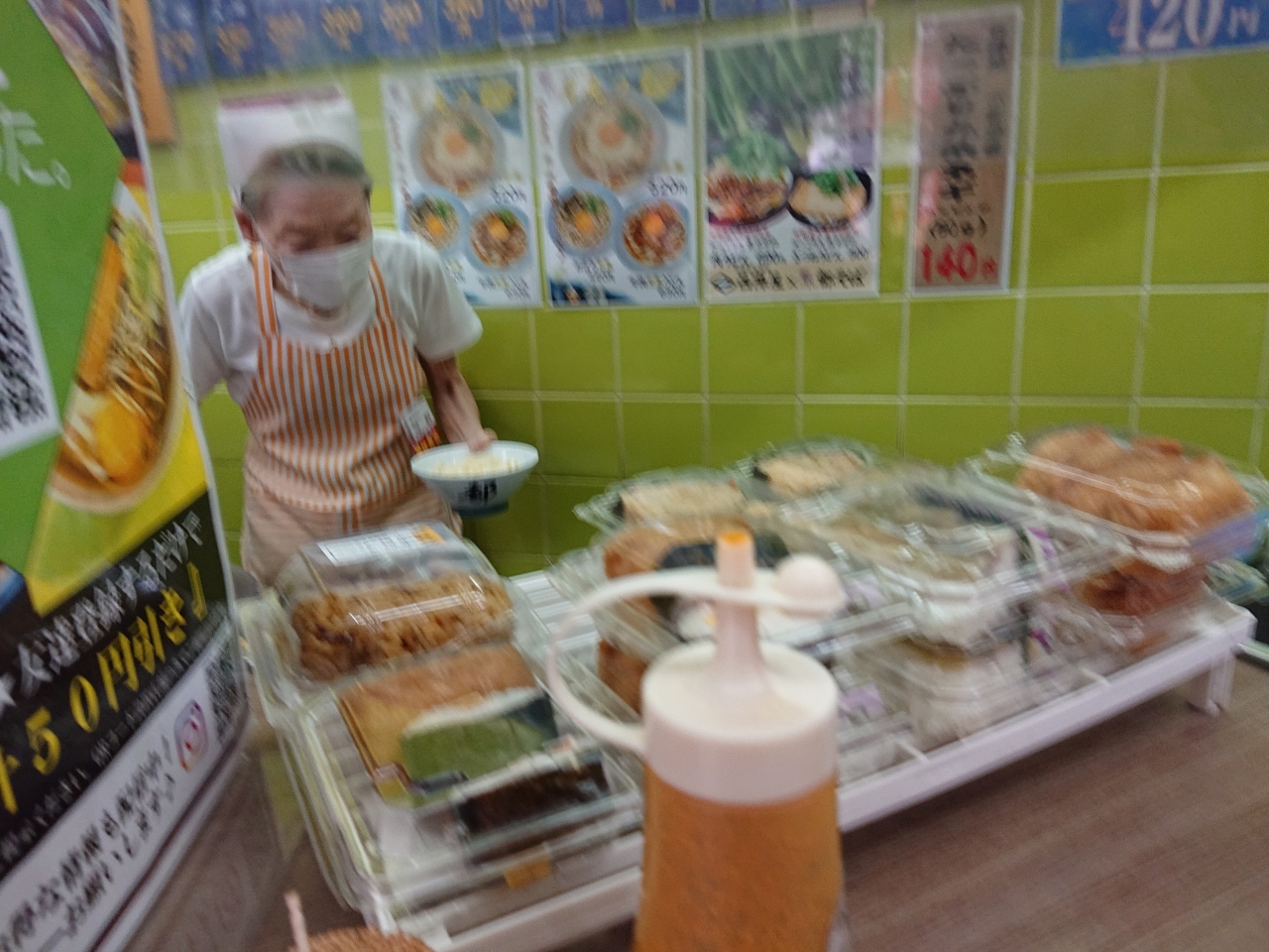 昨今、何処も電子マネーやあれこれ非現金化が進んでいますが、こちらは昔ながらの現金のみ。カウンターの上にはおにぎりや稲荷寿司が並んでいます。