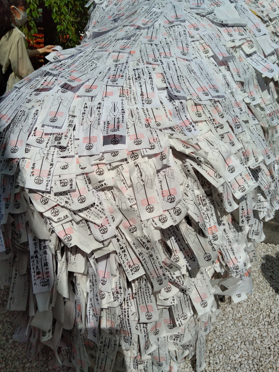 「縁切り縁結び碑」が有名な場所です。高さ1.5メートル、幅3メートルの絵馬の形をした巨石で、中央の亀裂を通して神様のお力が円形の穴に注がれています。「形代」を碑に貼るのでまわりはそれでおおわれています。形代を持って、願い事を念じながら碑をくぐります。自分は着物だったので、帯などの関係でくぐらなかったです。写真スポットとしてもとてもインパクトありです