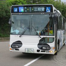 和歌山の白浜を走る路線バスです。結構な本数があるのですが、京大水族館あたりの臨海を経由するバスは1時間に1本という状態ですので、よく調べてから行かれることをおすすめします。今回はパンダ塗装のバスがやってきました。