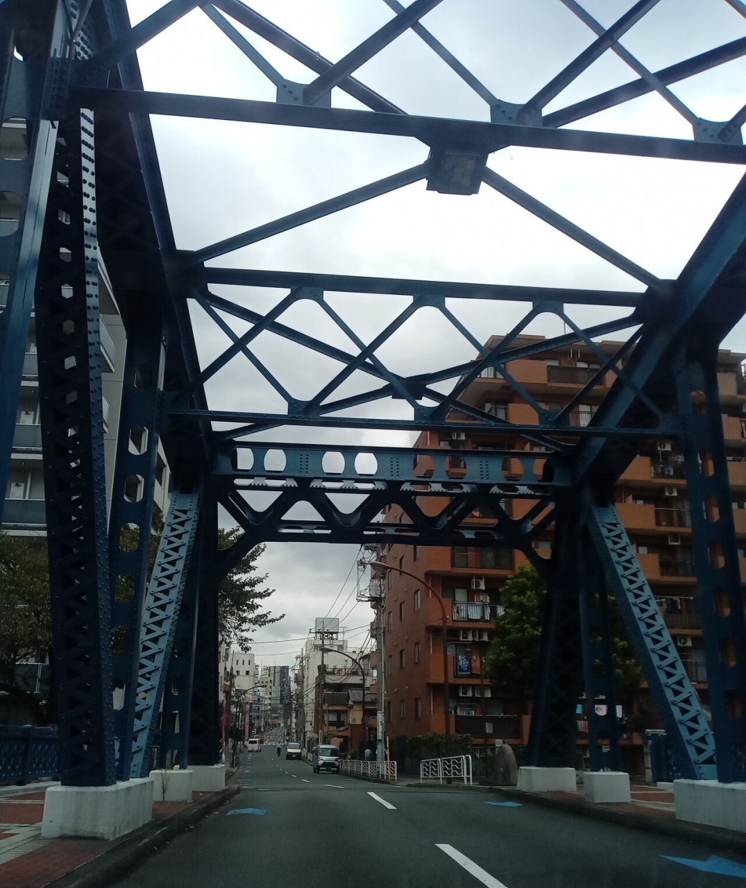 東京 江東区森下の「小名木川」に架かる「西深川橋」を通りました。鉄骨で出来た橋で、関東大震災の復興震災橋として架けられたそうです。
