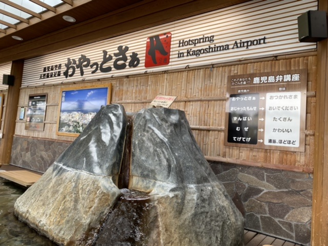 鹿児島空港にある足湯です。気分がスッキリするのでオススメです。200円くらいでタオルが買えるのですが、可愛いデザインで帰宅後もとても気に入っています。3種類あるみたいなので、全て買えばよかったと思うほどです。