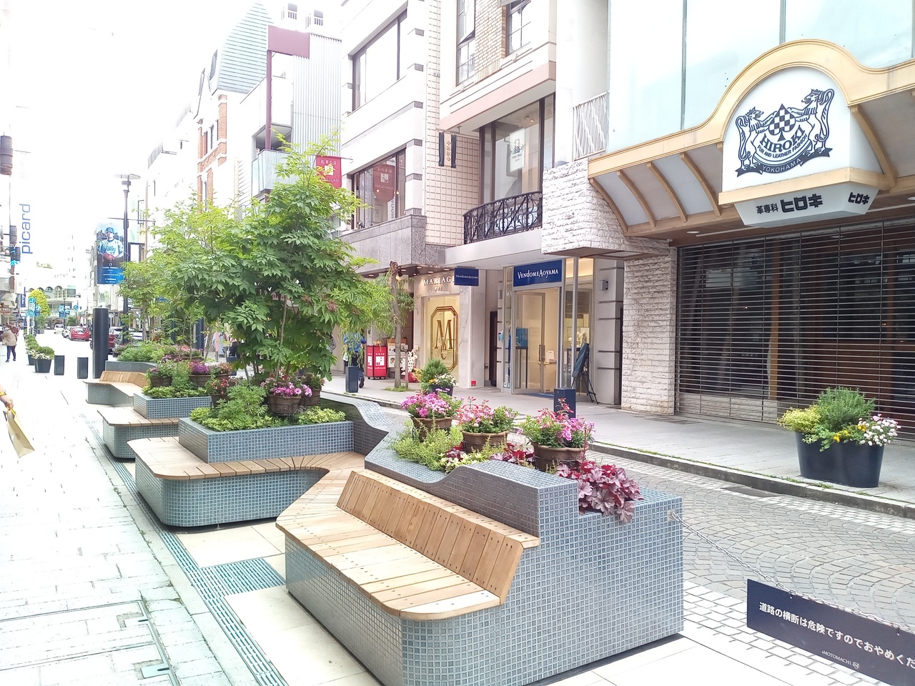 横浜元町の「元町ショッピングストリート」も、コロナ渦なので、お客様がまばらで、静かです。それでも、横浜元町ショッピングストリートらしく、綺麗に整備され、春らしいお花の演出がなされています。お洒落なショッピングストリートです。